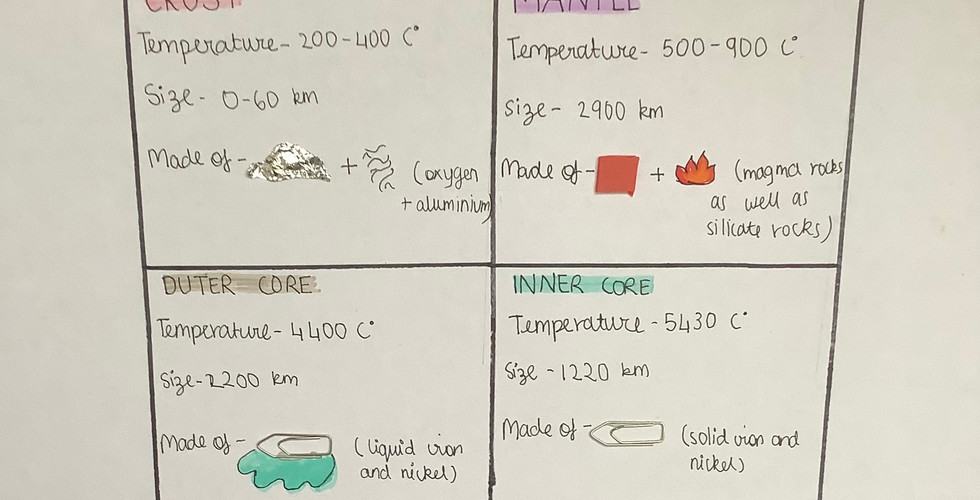Grade 8 Geography students explored the structure of the Earth by designing a 3d model and demonstrating it further. Models were made using home - based items such as clay, Styrofoam, bowl, dish, plastic cups, ball etc. We also had a cake model of the structure of the Earth. Isn’t it interesting and yummy…